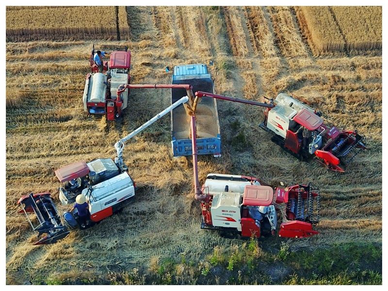6月4日,农垦寿西湖农场5.47万亩小麦收割进入高峰期,当天有近百台收割机在金色的麦田里来往穿梭,机器轰鸣,麦浪翻滚,一派喜人的丰收景象。今年开云手机登录入口夏粮再获丰收,基本实现优质专用小麦种植面积和“单种、单收、单储、专用”两个100%全覆盖的预期目标。
