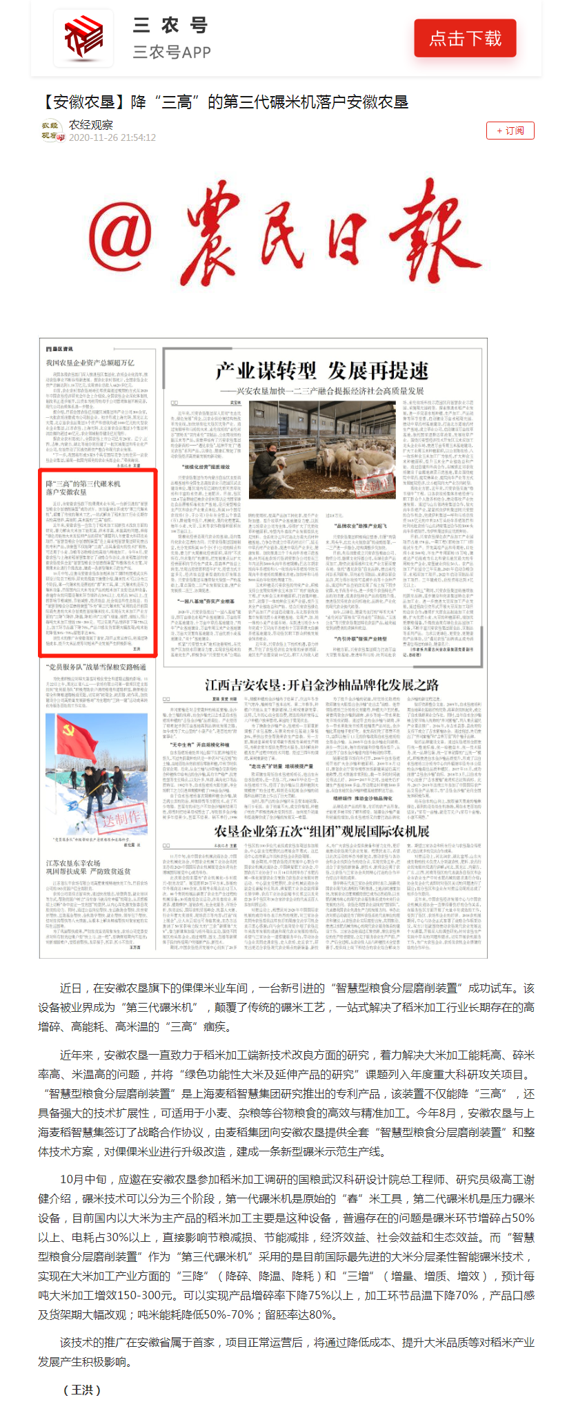 农民日报:降“三高”的第三代碾米机落户开云手机登录入口