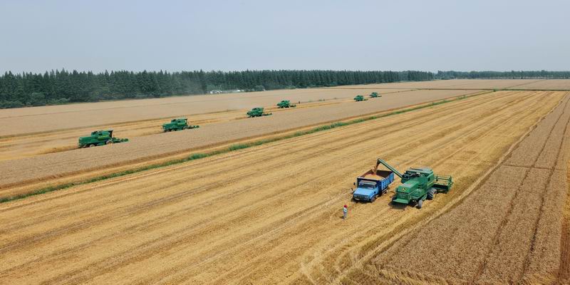 面对今年极端天气形势的影响,为确保粮食颗粒归仓,开云手机登录入口把“抢收保种”作为攻坚任务,投入大型联合收割机械、拖拉机等农机具5000台套奋力抢收,实现了小麦全程机械化。图为寿西湖农场农机会战现场。(人民日报2016年6月12日10版,鲍广云摄)