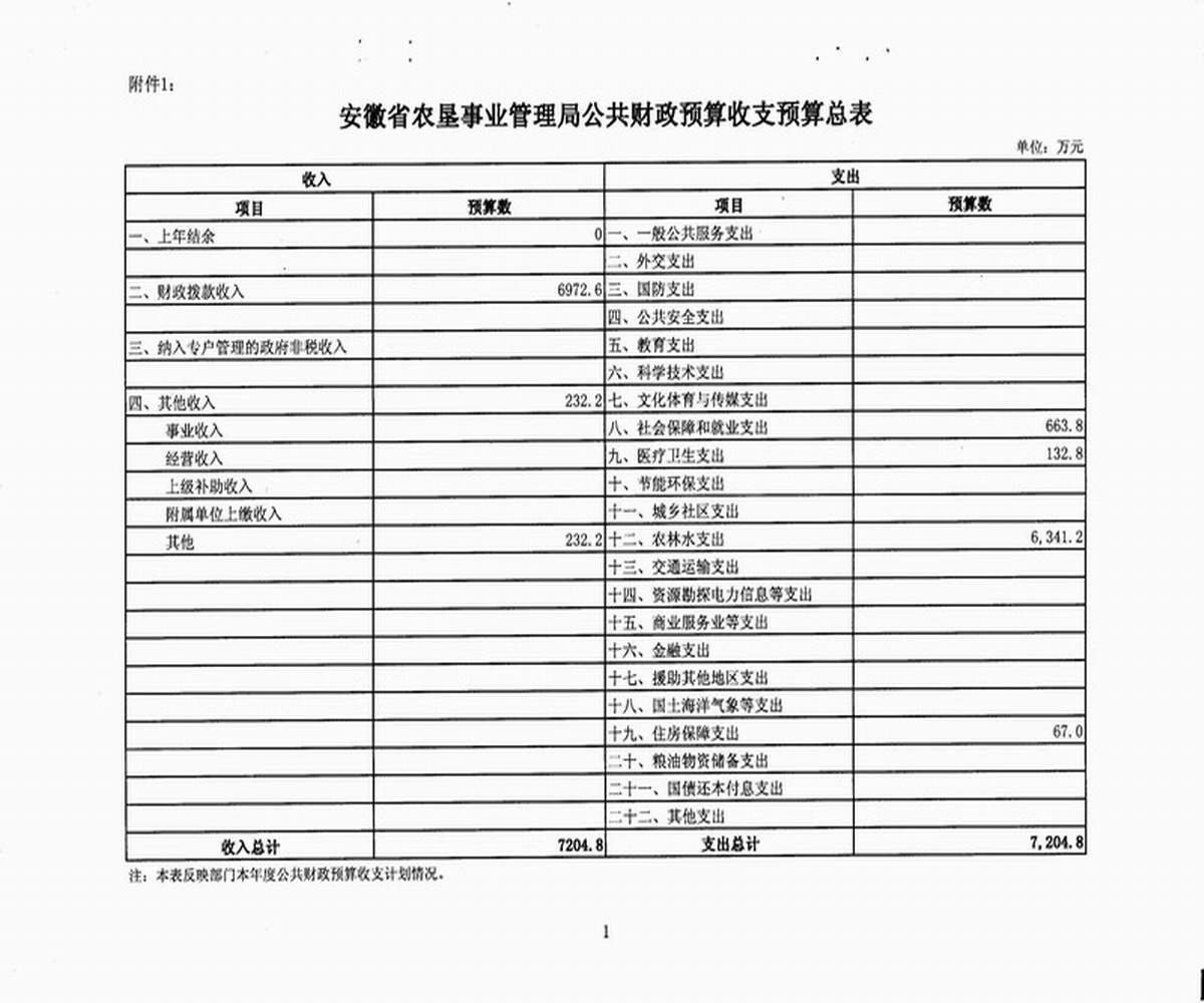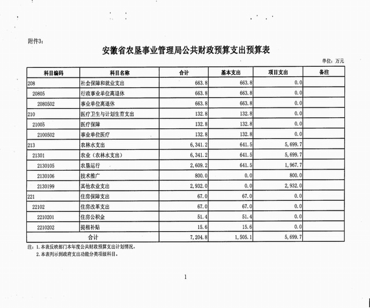 附件:1. 安徽省农垦事业管理局公共财政预算收支预算总表