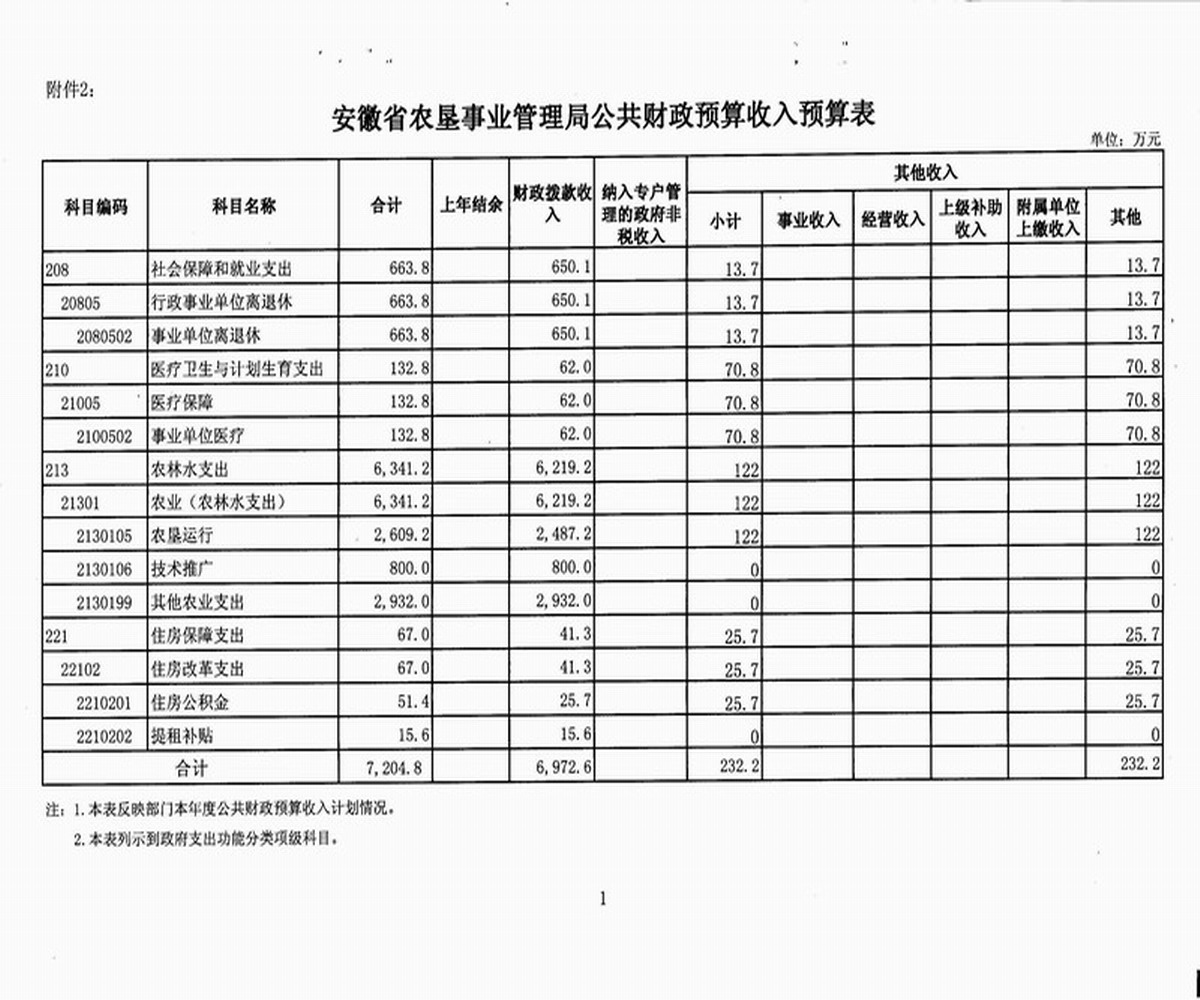 2. 安徽省农垦事业管理局公共财政预算收入预算表
