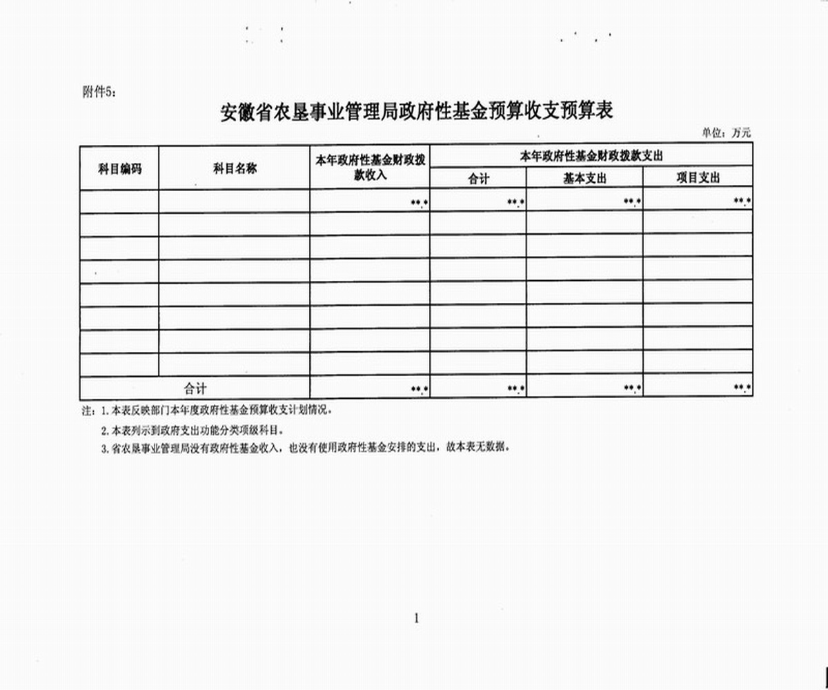 5. 安徽省农垦事业管理局政府性基金预算收支预算表