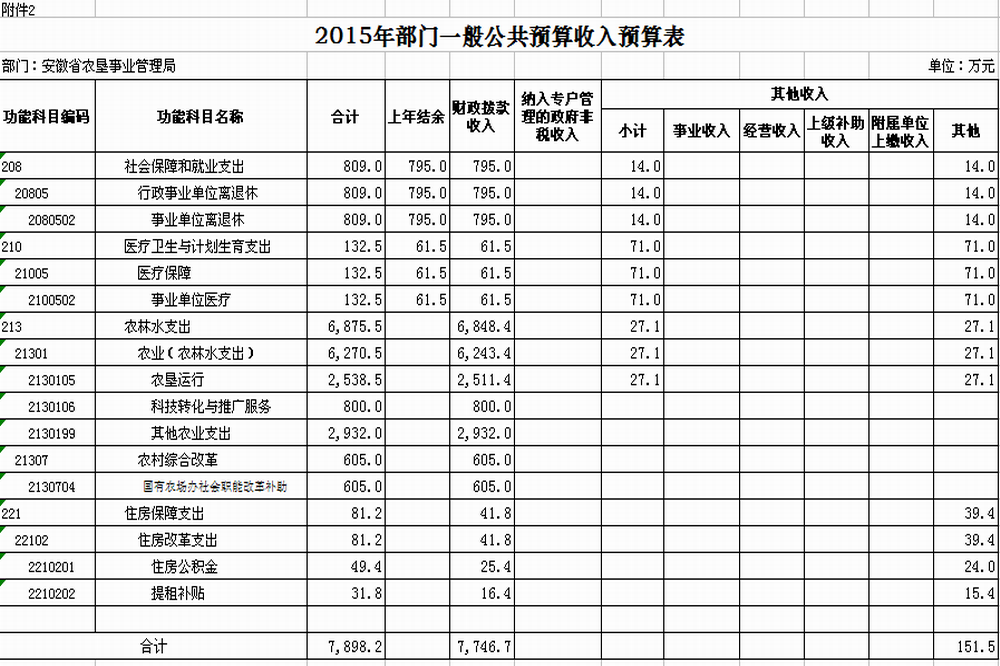 2. 安徽省农垦事业管理局2015年一般公共预算收入预算表