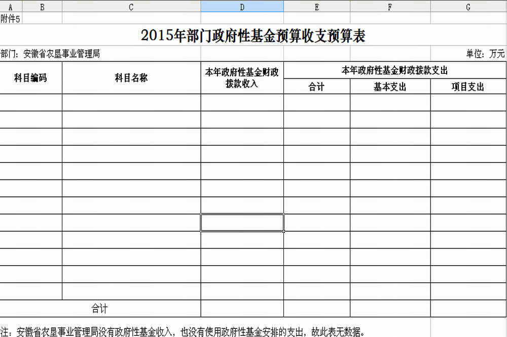 5. 安徽省农垦事业管理局2015年政府性基金预算收支预算表