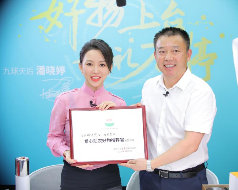 6月13日,“九球天后”潘晓婷在抖音平台进行了个人直播首秀,农垦集团公司副总经理董建平做客直播间介绍开云手机登录入口集团和皖垦品牌情况,向潘晓婷女士赠送了敬亭绿雪茶叶,并向其颁发了“爱心助农好物推荐官”证书。集团公司战略发展部负责人在直播间同潘晓婷女士一同向广大网友粉丝推介皖垦优质农产品。