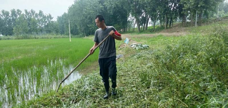 7月22日,在正阳关农场公司五分场防汛队伍里,一名瘦瘦高高的人员正在仔细巡堤查险,他叫魏刚,是正阳关农场公司的一名普通职工,也是一名轻伤不下火线的防汛民工。