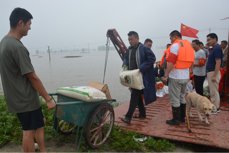 蓄洪后,阜濛分场的庄台被洪水包围成一个个孤岛,道路阻断,生活不便,只能依靠防汛船运送生活物资。青年郭伟承担着每天跟随防汛船为庄台群众搬运物资,在农场最北面庄台驻点值班。小伙子细心周到,任劳任怨,职工群众为他点赞。