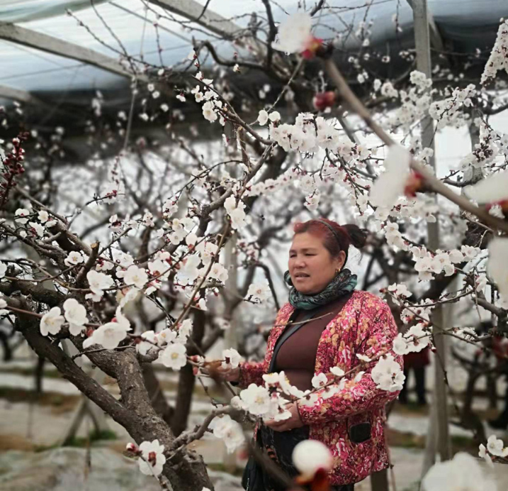 春寒料峭的二月,砀山果园场公司一分场大棚里,暖意融融,一朵朵杏花竞相开放,娇艳动人,1名女职工正在为杏花授粉。