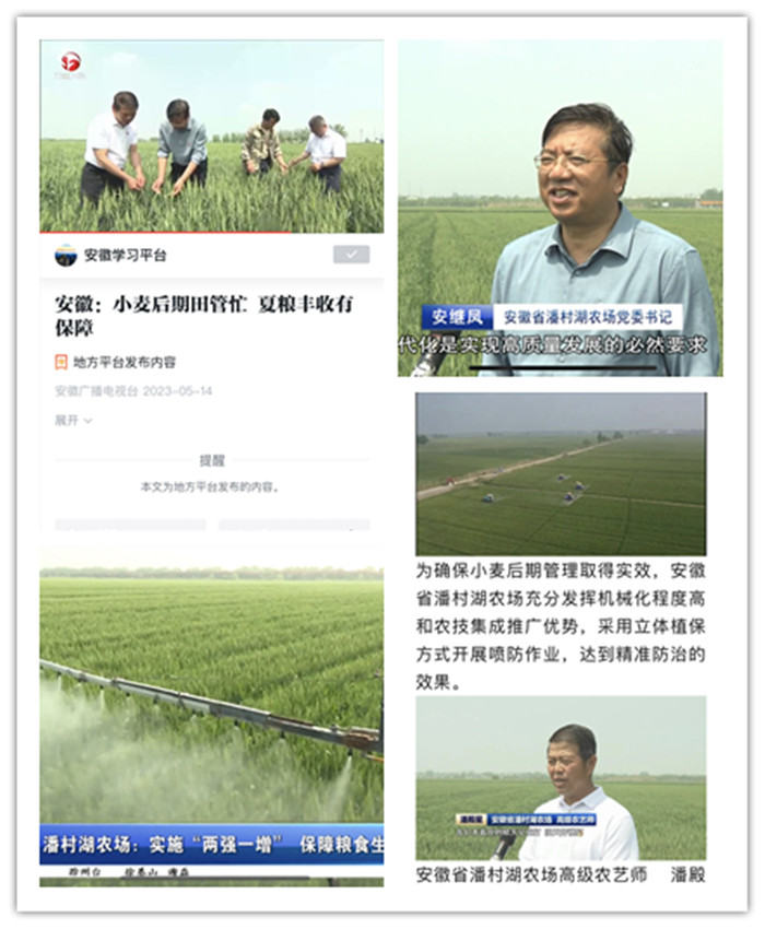 5月13日,安徽卫视《安徽新闻联播》节目以“小麦后期田管忙 夏粮丰收有保障”为题,汇编播出潘村湖农场加强小麦后期管理电视新闻。