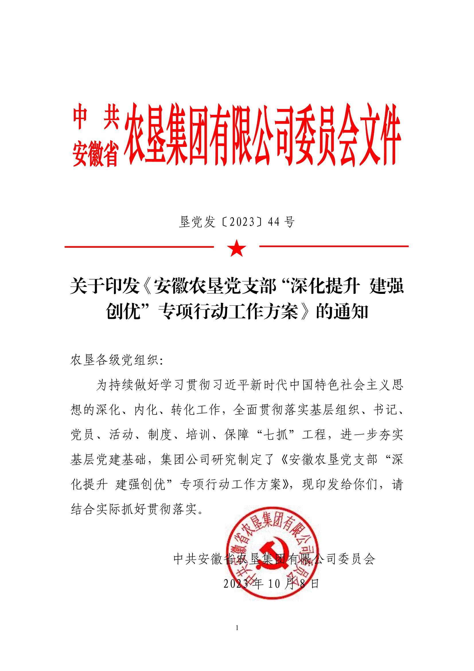 为持续做好学习贯彻习近平新时代中国特色社会主义思想的深化、内化、转化工作,巩固学习贯彻习近平新时代中国特色社会主义思想主题教育成果,夯实基层党建基础,提升党建水平,创新农垦党建工作模式,逐步打造农垦1+N党建品牌体系,近日,安徽省农垦集团公司党委印发了《开云手机登录入口党支部“深化提升 建强创优”专项行动工作方案》。