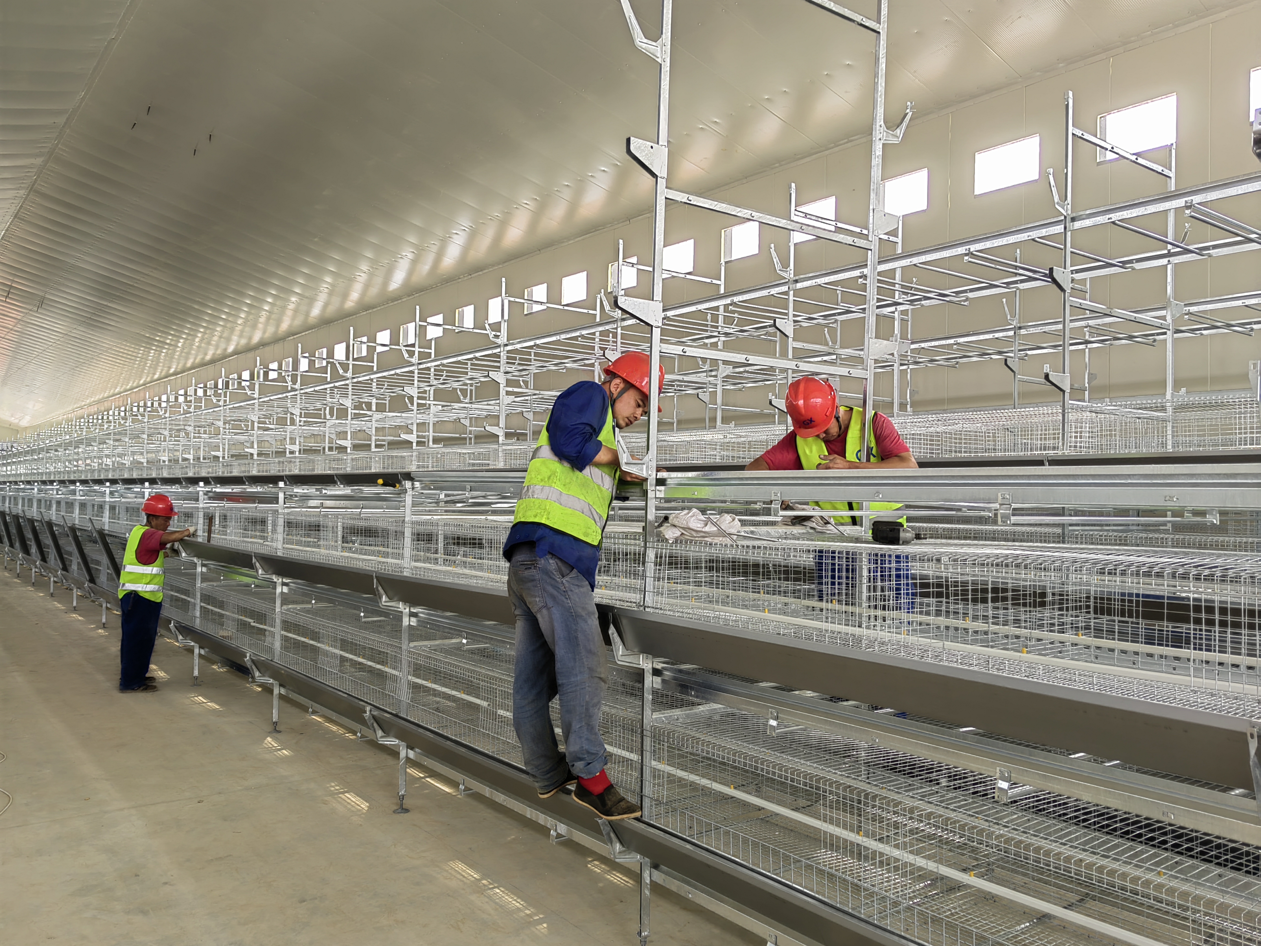 近日,安徽省江南茶海禽业有限公司为保证百万羽项目按期完工,公司以“时不我待”的姿态,在土建、设备采购、市场开发方面“三管齐下”,全速推进项目进度。截止目前,项目土建部分已完成总工程量的69%,12栋鸡舍钢构已全部完成并进入彩板安装,其他辅助设施也在加紧扫尾施工中。10月25日,羽蛋鸡项目建设再提速,第一批鸡笼设备进场安装,此次安装的鸡笼是青年鸡舍养殖设备,青年鸡舍设备预计在2024年1月底前可完成安装调试。