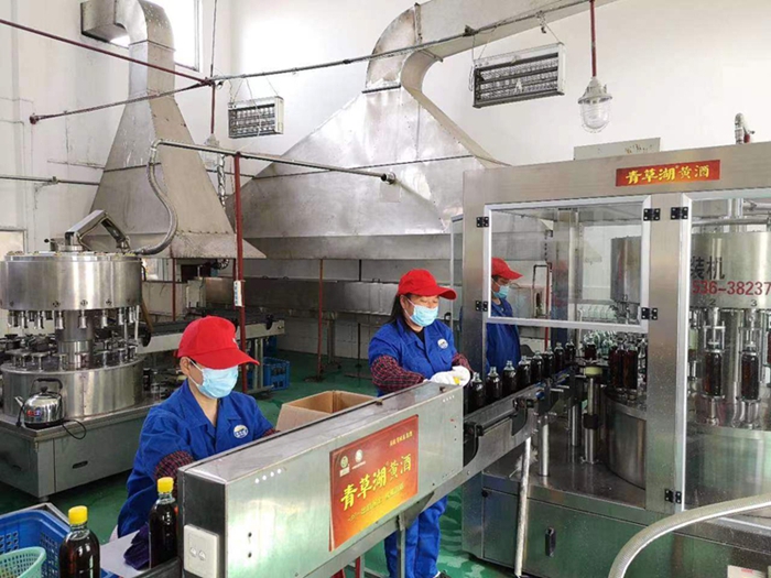 青草湖酒业公司职工正抓紧组织黄酒生产。(许庆伟 摄)