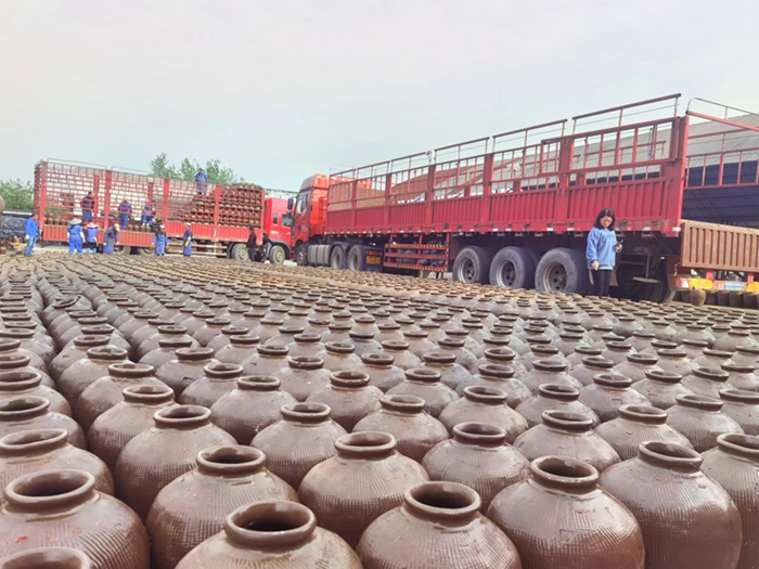 青草湖酒业公司购新坛装新酒。(许庆伟 摄)