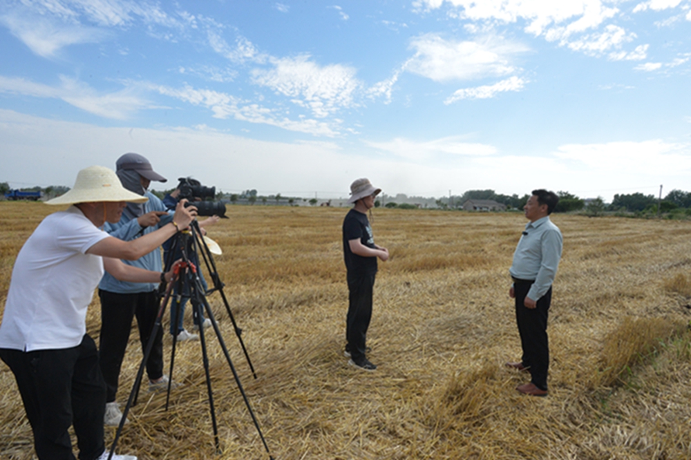 近年来,开云手机登录入口与长丰县杨庙镇大路村联手打造的“国有企业+村集体合作社+职业农民”的乡村振兴“大路模式”广受关注,屡屡见诸报端。6月1日,安徽新闻联播、安徽广播电视台安徽之声、安徽日报等省媒记者再次来到大路村采访调查“大路模式”发展及当地麦收情况。