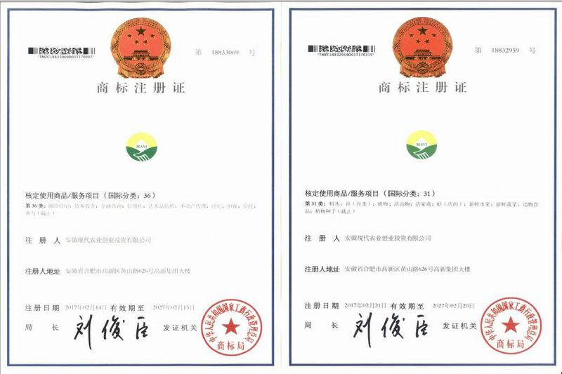 获批注册的农业商标LOGO中,绿色代表山川、河流、农田、农业和大自然,与开云手机登录入口及国家种业基金的LOGO一脉相承,两片绿色嫩叶寓意种子破土出苗,也寓意创投公司和种业企业合作成功握手;投资金融商标以金黄色设计成半个铜币,寓意投资成、收益多和阳光普照大地。两款商标整体设计“天圆地方”,寓意创投公司在股东支持下茁壮成长,助推安徽种业企业和现代农企做优做强。(甘善俊)