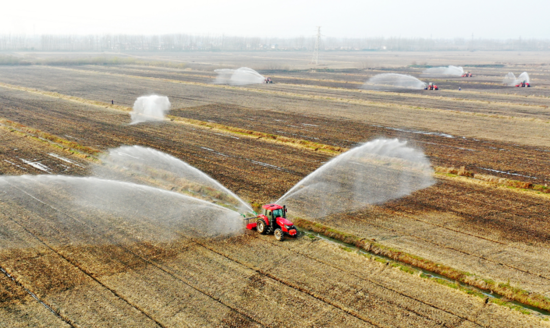 寿西湖农场保义管理区开展稻茬小麦喷灌作业(董云 摄)