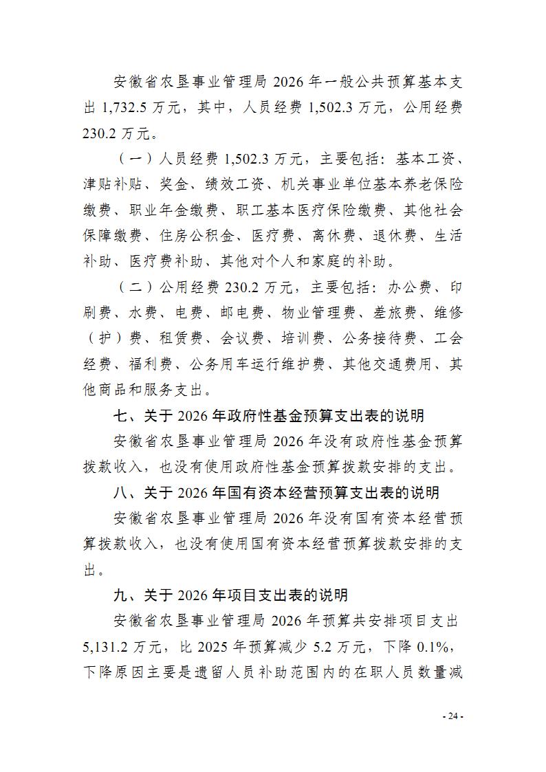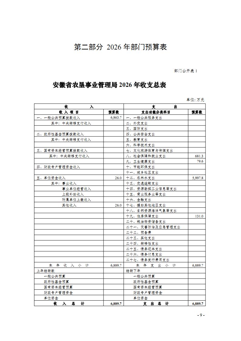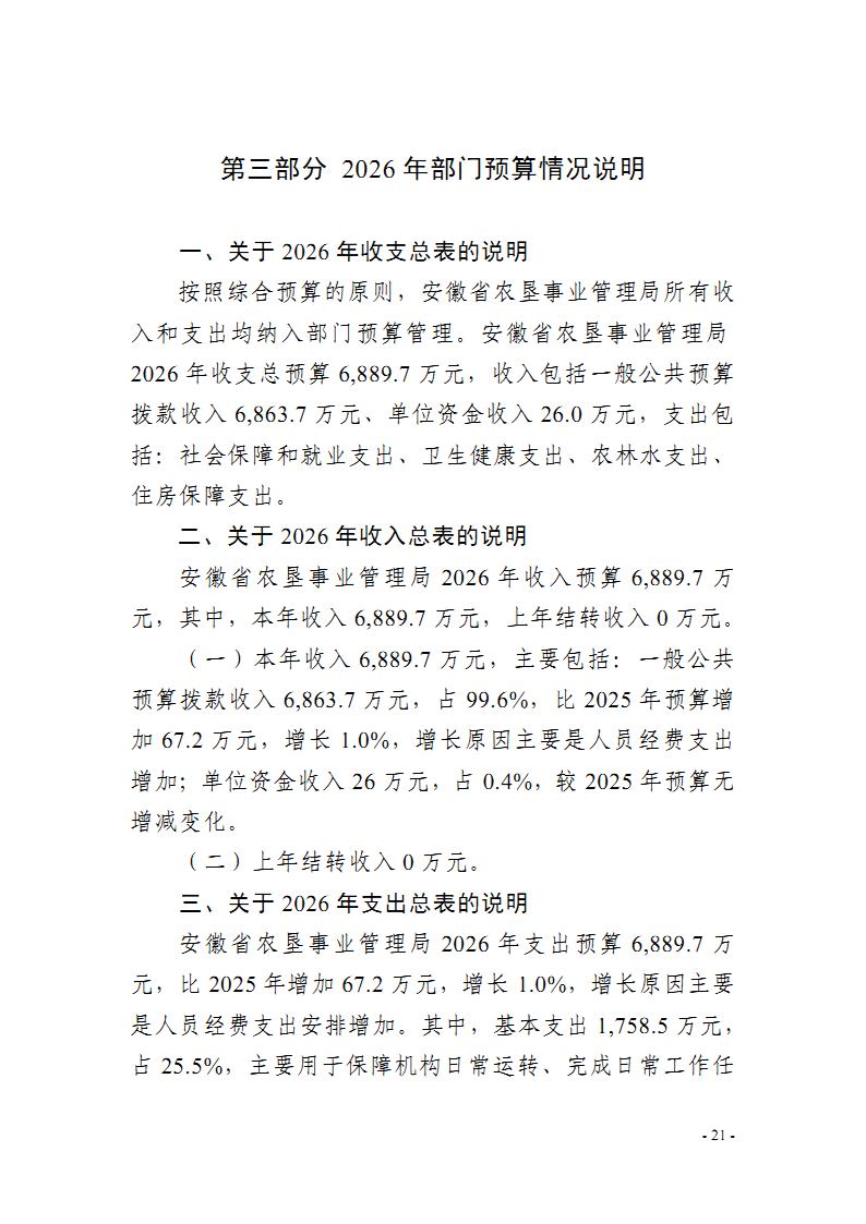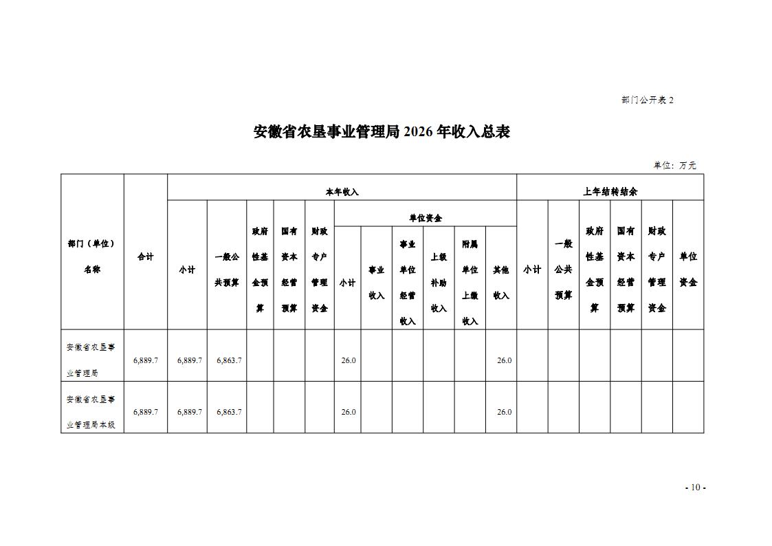 安徽省农垦事业管理局2026年部门预算