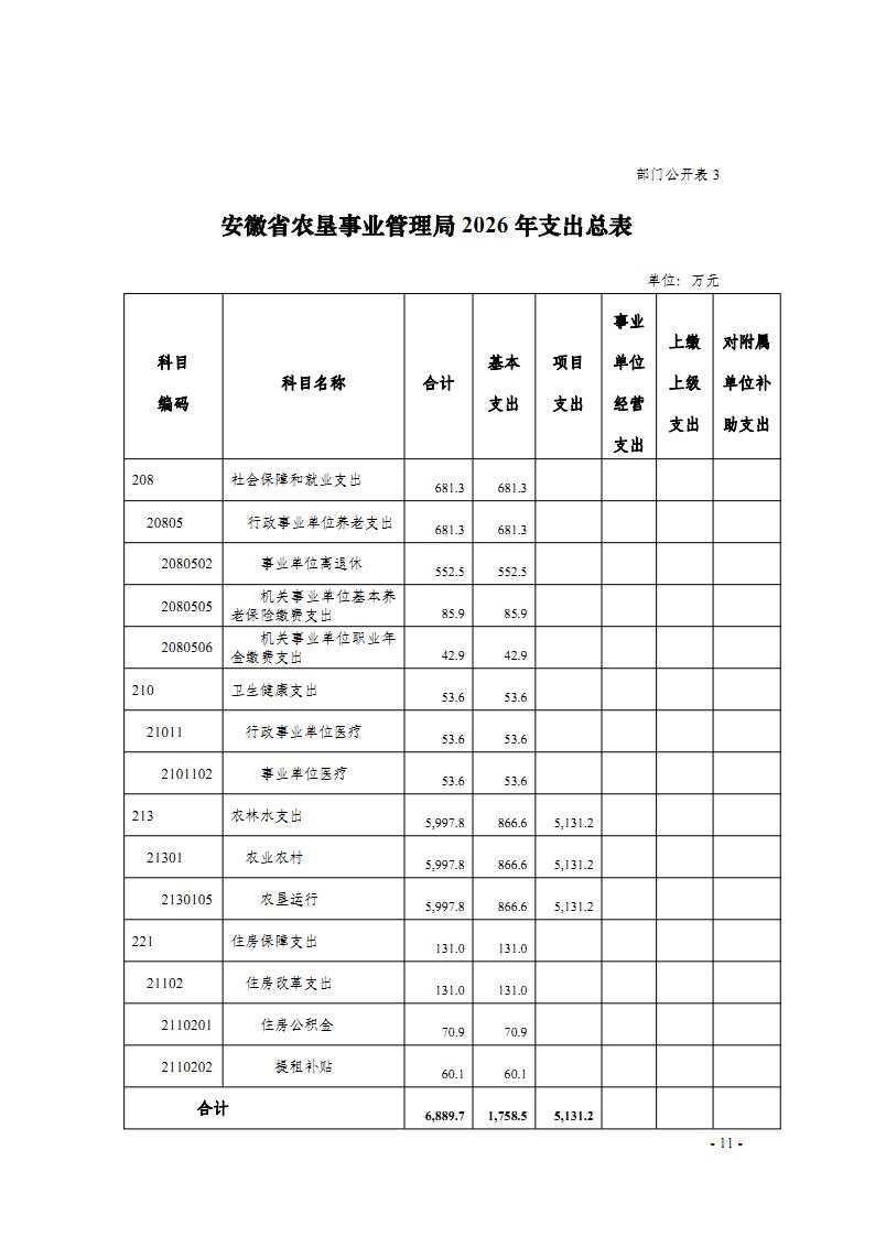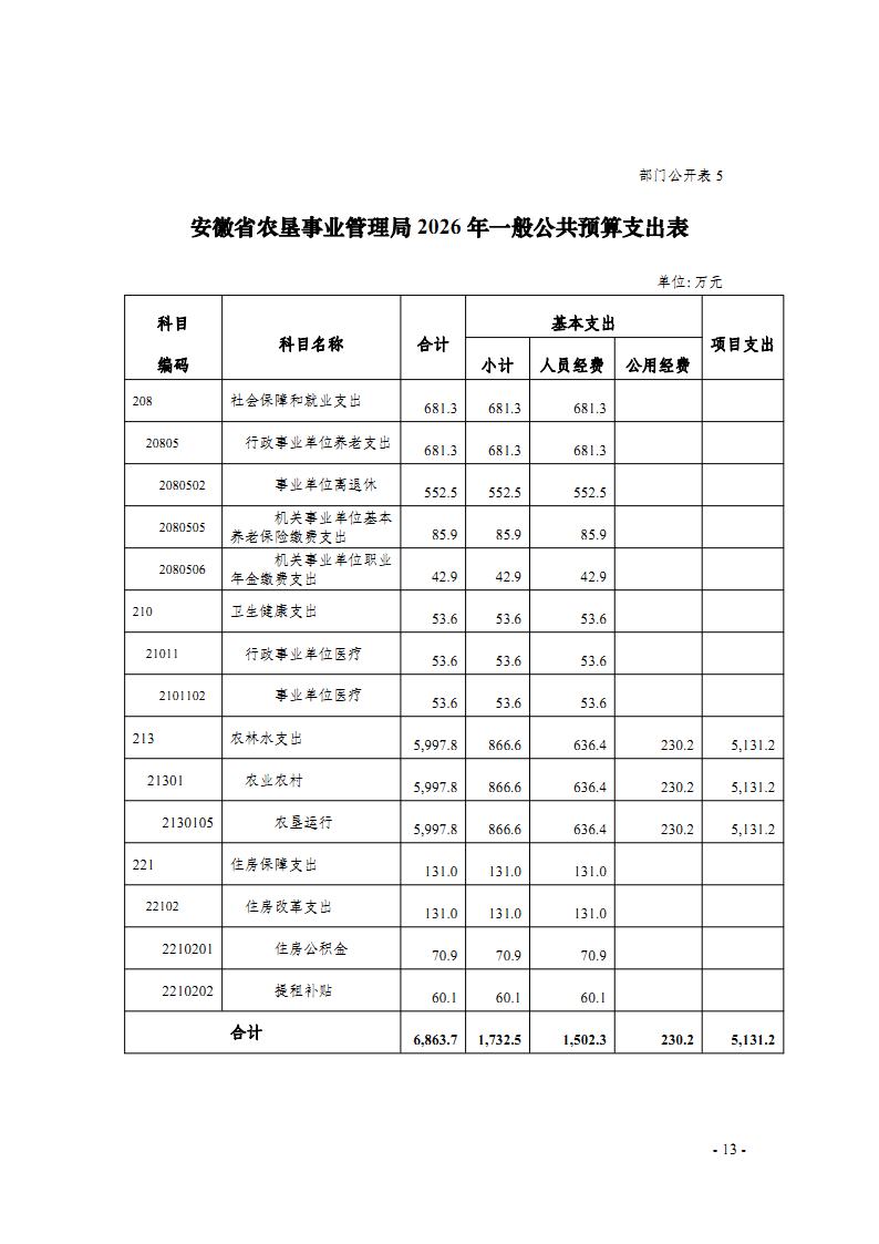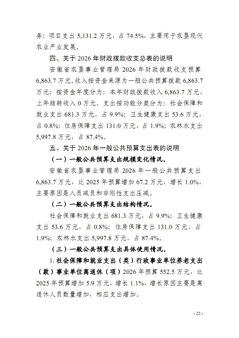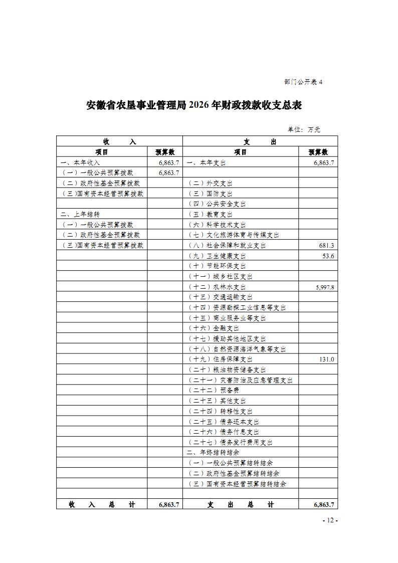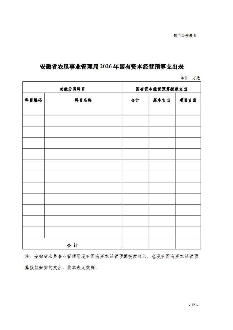 安徽省农垦事业管理局2026年部门预算