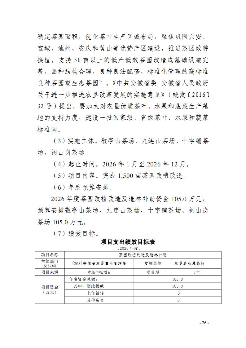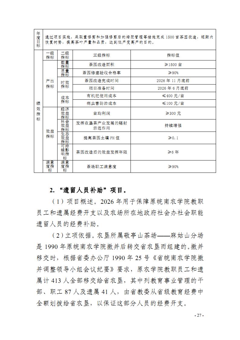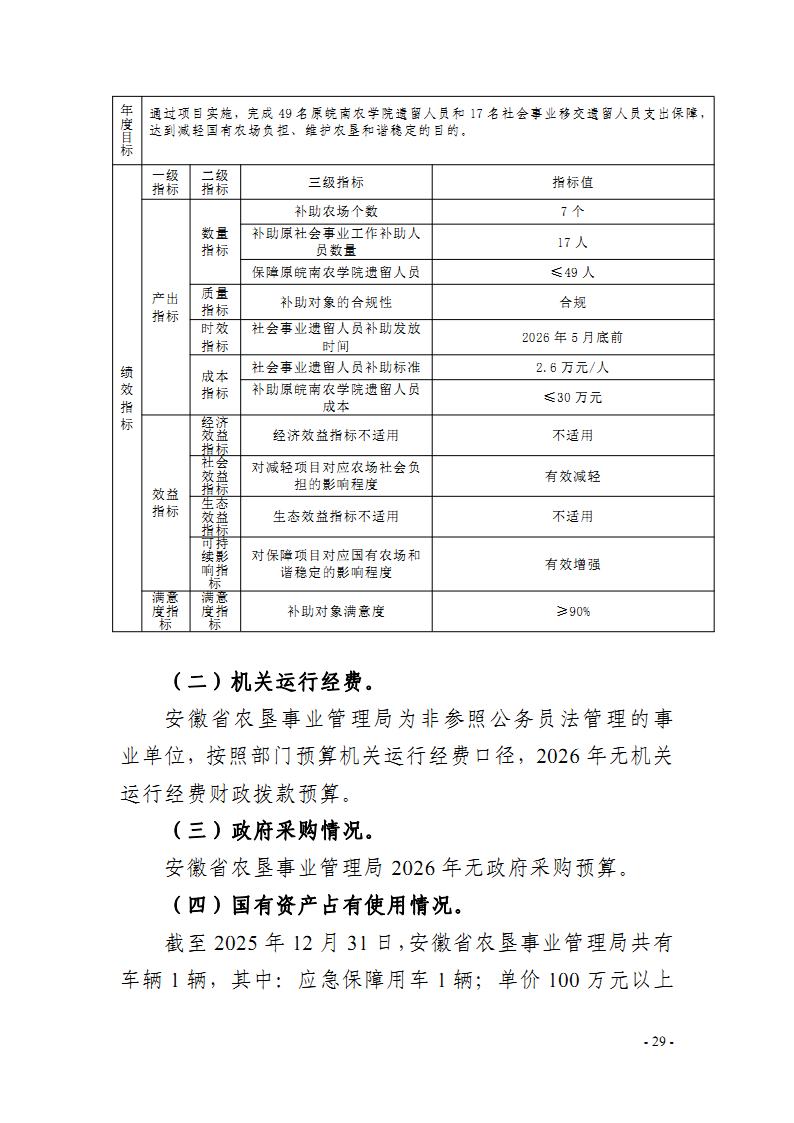 开云手机登录入口:安徽省农垦事业管理局2026年部门预算批复的其他项目绩效目标