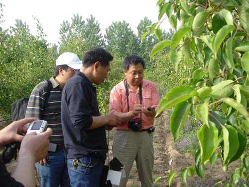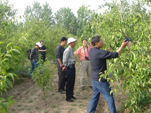为了防止病情的蔓延,影响果树生长,我场特邀请北农大教授来我场进行病菌(病毒)分离培养,5月17日,北农大教授一行三人在我场梨园内进行了接种试验,以确定病菌种类,找出防治病害的有效药物。