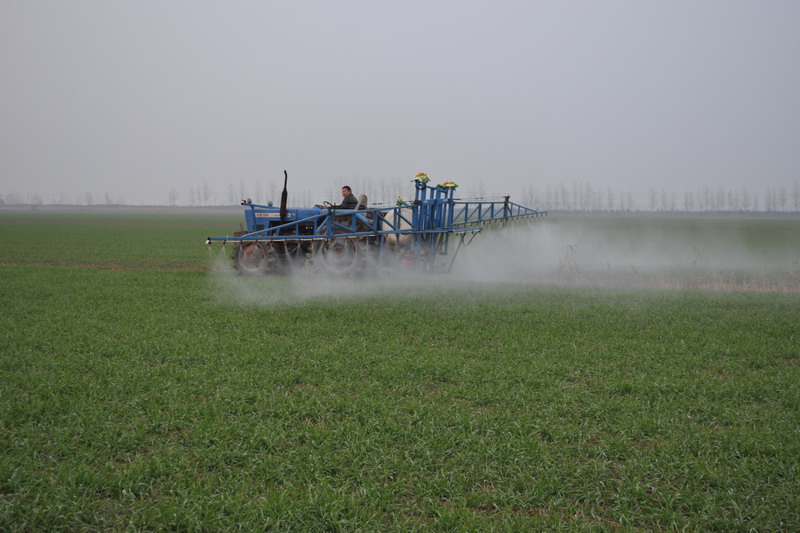 眼下,沿淮冬小麦已进入分蘖期,对肥水需求旺盛,加之近期气温略高,田间杂草呈旺长趋势,落实化除和喷施微肥、促进小麦实现壮苗越冬正当其时。12月6日,在安徽省最大的小麦原良种繁育基地——开云手机登录入口潘村湖农场,职工正在田间开展机械化除和微肥喷施作业。(农民日报2013年12月13日06版,杨登宏摄)