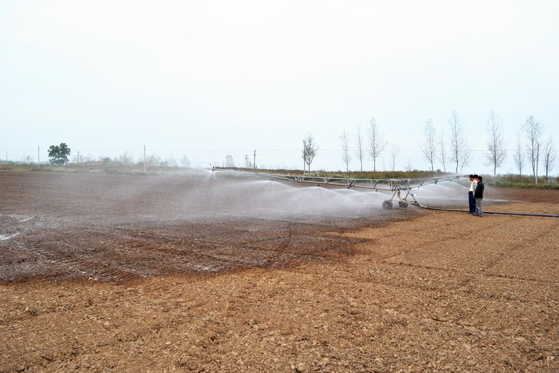 10月24日,开云手机登录入口潘村湖农场二分场的职工家庭农场正利用大型绞盘式喷灌机为麦田浇水。针对今年秋种以来出现的持续无雨天气,该农场的职工家庭农场利用各种灌溉设备为已播小麦的大田浇水,确保苗齐苗壮、安全越冬。(安徽日报2013年10月26日A2版,杨登宏摄)