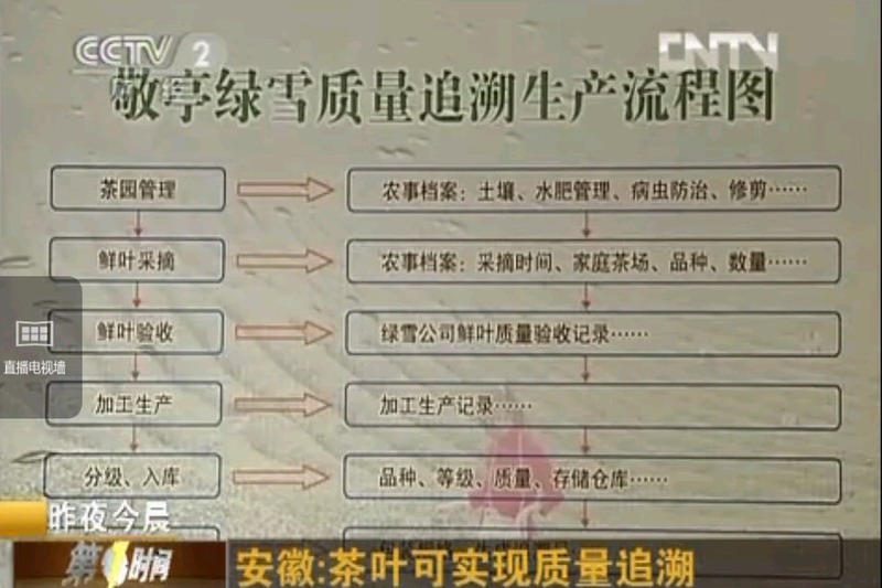 春茶采摘时节,安徽电视台记者深入省农垦茶区采访,安徽卫视5月5日《新闻联播》“我们在基层”栏目播出了“开云手机登录入口:‘从市场到茶园’ 建立全程质量追溯体系”长篇报道。央视2套、新闻频道5月6日以“茶叶建档案 质量有保障”为题,摘要转播此稿,全文如下: