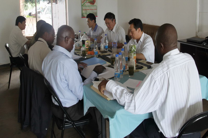 会议指出,2011年,皖津公司全体员工全力推进皖津温亚尼、SISI两个农场的生产恢复和小麦种植工作,让往日荒芜的土地、颓废的农场变成了而今的大粮仓,成功收获了750公顷小麦,总产量3375吨,占津巴布韦小麦总产量的30%,平均单产4.5吨/公顷,较当地增产70%,首季小麦种植成功为公司下步加快发展打下了坚实基础。津巴布韦连续两年遭遇大旱,雨季推迟一个多月,给皖津公司带来了极大考验,但全体员工发扬农垦人勇于拼搏、吃苦耐劳的创业精神,将雨季种植规模扩大到1600公顷,并结合实际调整种植结构,不仅种植了玉米、大豆等常规作物,而且试种了45公顷烟叶,目前作物长势喜人。