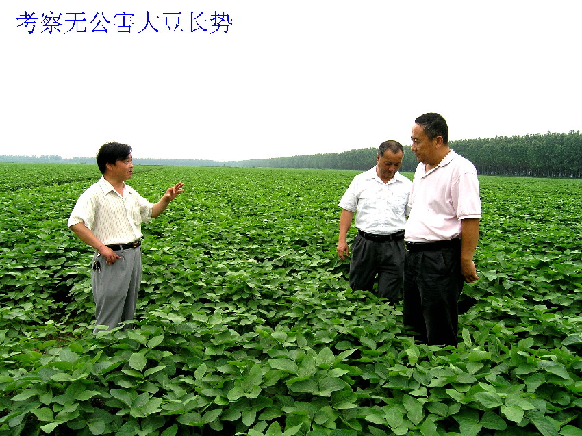 在场有关部门负责人的陪同下,检查组深入农业分场实地考察了无公害产地环境和当前大豆长势。党委副书记林贤传会见了汤天明一行,并介绍了本场无公害农产品生产情况和主要做法。检查组还仔细察看了农场编印并发到职工家庭农场手中的农产品无公害化生产操作规程,抽查了部分职工家庭农场田间档案,对潘村湖农场取得无公害农产品产地及产品认证以来,严格按照无公害农产品质量控制体系要求,狠抓落实,确保所生产的农产品符合国家标准的做法给予了高度赞赏。