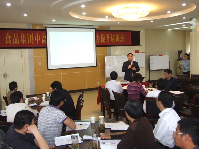 培训班特邀TTT国际职业培训师,北大经济学院、北京时代光华教育发展有限公司、商战名家、中国人力资源开发网、中华培训网、成功在线、中国总裁培训网、中国人力资源开发研究会等多家机构特约讲师,“2008中国百强讲师”邱明俊授课,围绕“跨部门沟通的解决之道”、“目标管理与绩效考核”两个模块进行。课堂上,邱老师融入主题讲授、案例研讨、实操演练等多种教学方式,深入浅出,寓教于乐,使学员受益匪浅,也为集团化管理提供了有价值、可借鉴的科学方法,促进了食品集团管理工作再上新台阶。